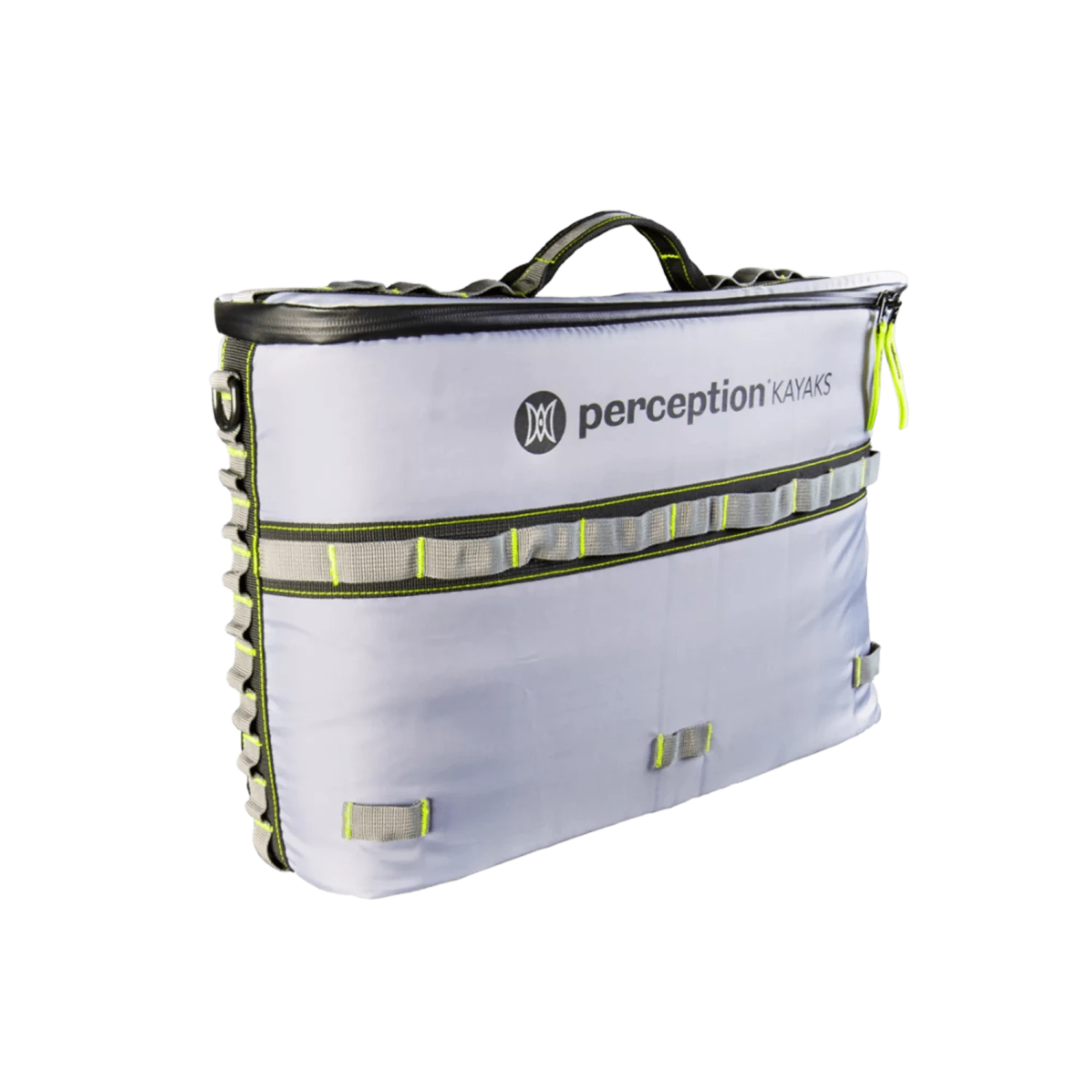The ultimate slim seatback kayak cooler is here, perfect for keeping drinks and food cold while paddling. This cooler attaches to the back of a lawn chair-style kayak seat via a robust bungee ball system (included). Thanks to its exclusive clip-in system, it is compatible with Perception Splash rod holders and Splash pocket organizers (sold separately). It features waterproof materials, a YKK water-resistant zipper, and RF-welded internal seams, making it durable against splashes and rain. The 3/4” thick closed cell foam keeps drinks and food cold all day long, and the webbing loops and D-rings offer additional lash-down options or can be used to attach extra gear. With a capacity of 12 cans assuming a 1:1 ratio of ice, this kayak cooler also comes with an easy-carry ergonomic grab handle. Please note that it is not intended for submersion or storing fish. Measuring 11.75”H x 18” W x 5” D externally and 11” H x 15.5” W x 4” D internally, this cooler is compatible with Perception Pilot, Pescador Pro 10/12, Crank, Outlaw and other lawn chair-style seating systems.