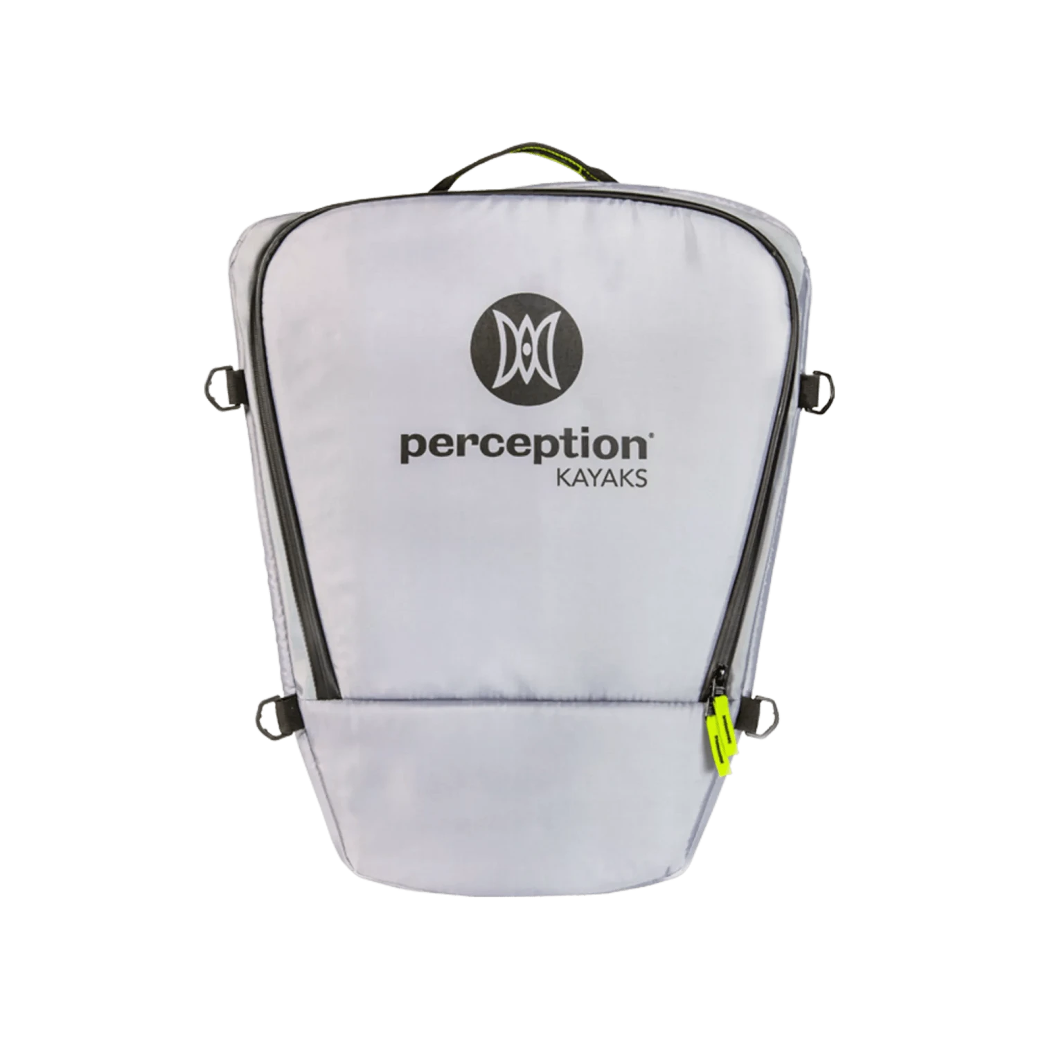 The ultimate kayak soft cooler has arrived and is designed to fit perfectly in the storage wells of sit-on-top kayaks. It’s versatile enough for everyday use too! With a zippered opening on top for ultimate convenience when accessing drinks and food, this cooler also has a low-profile shape to minimize the impact of wind. The YKK water-resistant zipper, water-proof materials, and RF-welded internal seams keep splash and rain out, while the ½” thick insulating foam keeps drinks and food cold all day. Adjustable backpack-style shoulder straps and a strong haul handle make portage easy. 4 D-rings in each corner allow for lashing down to the kayak, and a heavy-duty material on the bottom panel adds durability. This cooler has a capacity of 40 L and can hold 20 cans assuming a 1:1 ratio of ice. It is not intended for submersion or storing fish. The external dimensions are 21.5” L x 8” H x 17.75” W (10” W at small taper side), and the internal dimensions are 18.5” L x 7” H x 16.5” W (9.5” W at small taper side). This cooler is compatible with most sit-on-top kayaks with storage wells and Perception Hook and Perception Sound 10.5 sit-inside models (note: not compatible with the Sound 9.5). Get ready for the ultimate kayaking experience with this soft cooler!